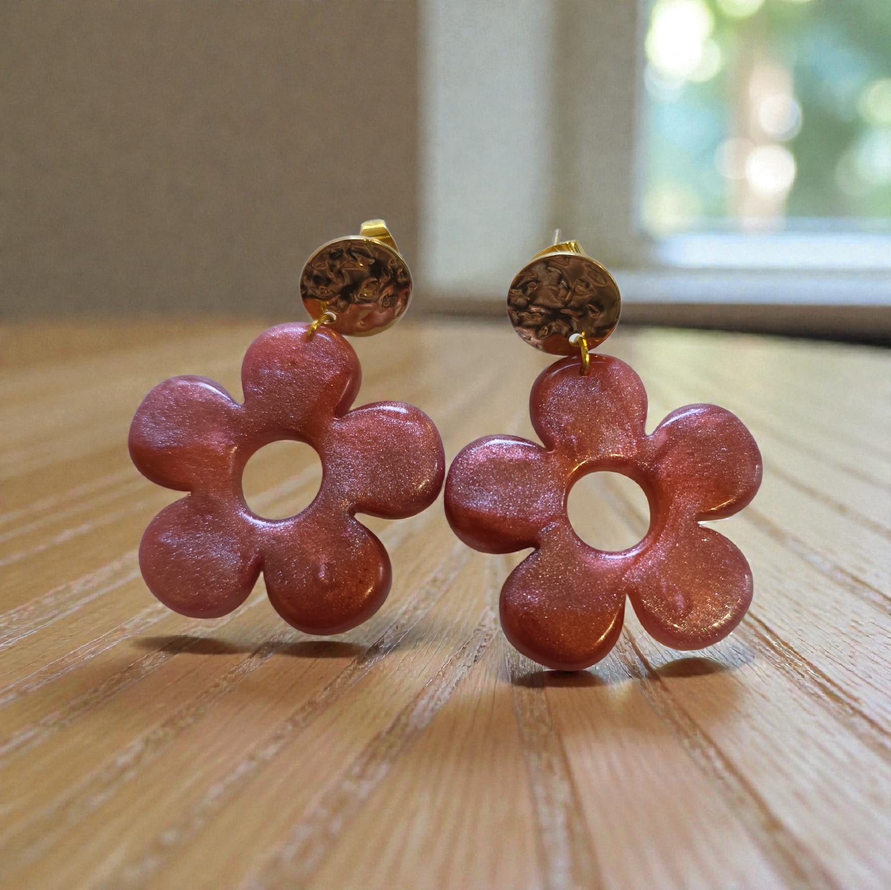 Bold and luminous, ZEPPLINE LED earrings stand out with their openwork floral pattern and shimmering reflections. Their subtly glittery, coppery-pink hue catches the light and adds a warm and elegant touch to your style.