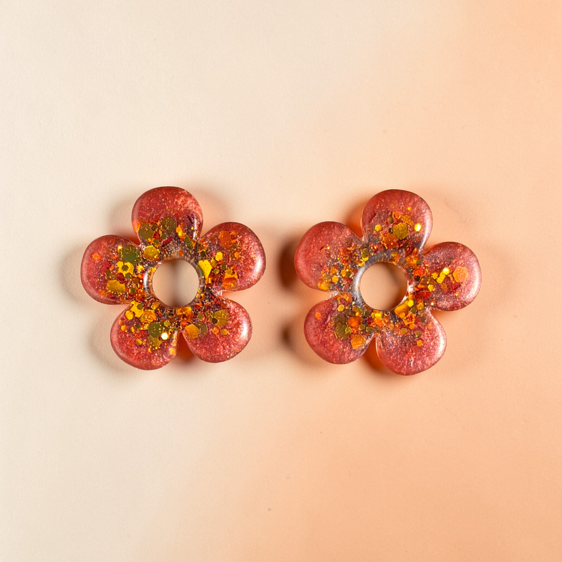 Douces et lumineuses, les boucles d’oreilles LED ZEPPLINE se déclinent ici dans une version corail rosé subtilement pailletée, sublimée par des éclats dorés et orangés au centre. Leur forme fleur ajourée à cinq pétales et leur trou central signature offrent un design moderne et élégant, tout en laissant passer la lumière pour révéler toute la profondeur des nuances.