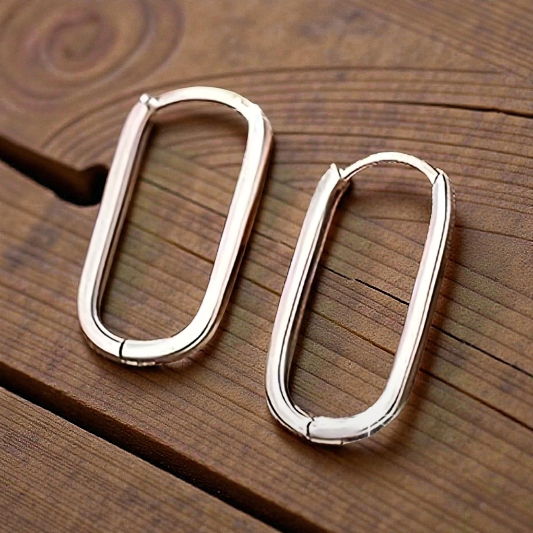 Boucles d’oreilles créoles rectangulaires – finition argentée (Hauteur : 18 mm, Largeur : environ 8 mm) AR-1022