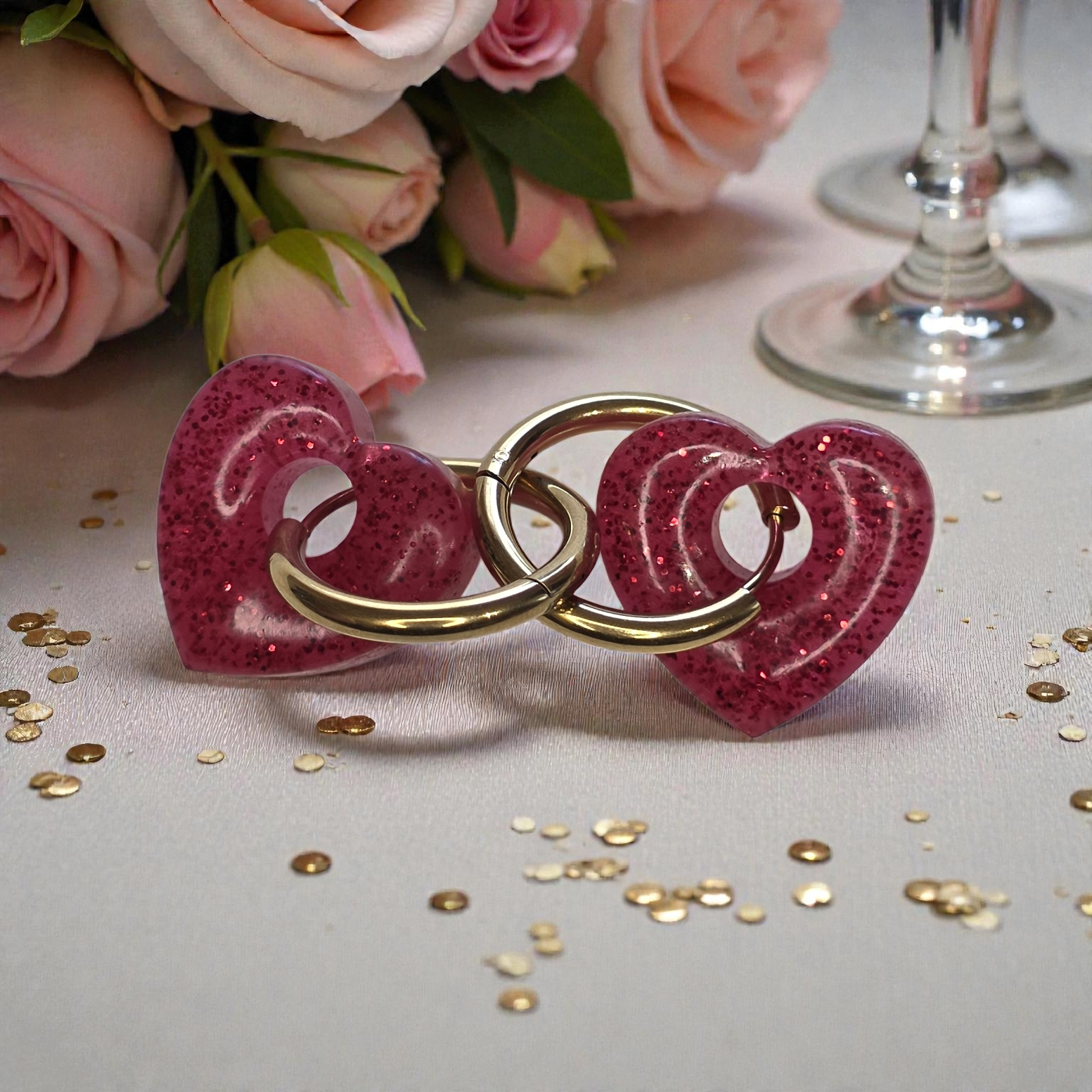 Vibrant et lumineux, ce charm cœur se distingue par sa forme ajourée et ses nuances intenses de rose framboise sublimées par de fines paillettes scintillantes. La résine capte la lumière avec éclat et révèle un effet brillant et profond qui évolue selon l’éclairage, offrant un rendu à la fois romantique, festif et élégant.