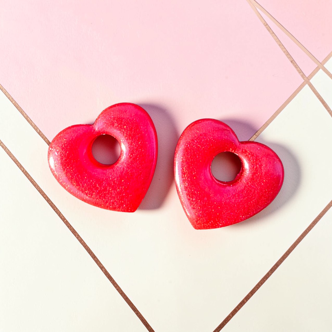 Vives et lumineuses, les boucles d’oreilles CHARM CŒUR se déclinent ici dans une version rose intense aux fines paillettes scintillantes. Leur forme cœur ajourée d’un trou central apporte une touche moderne et originale.